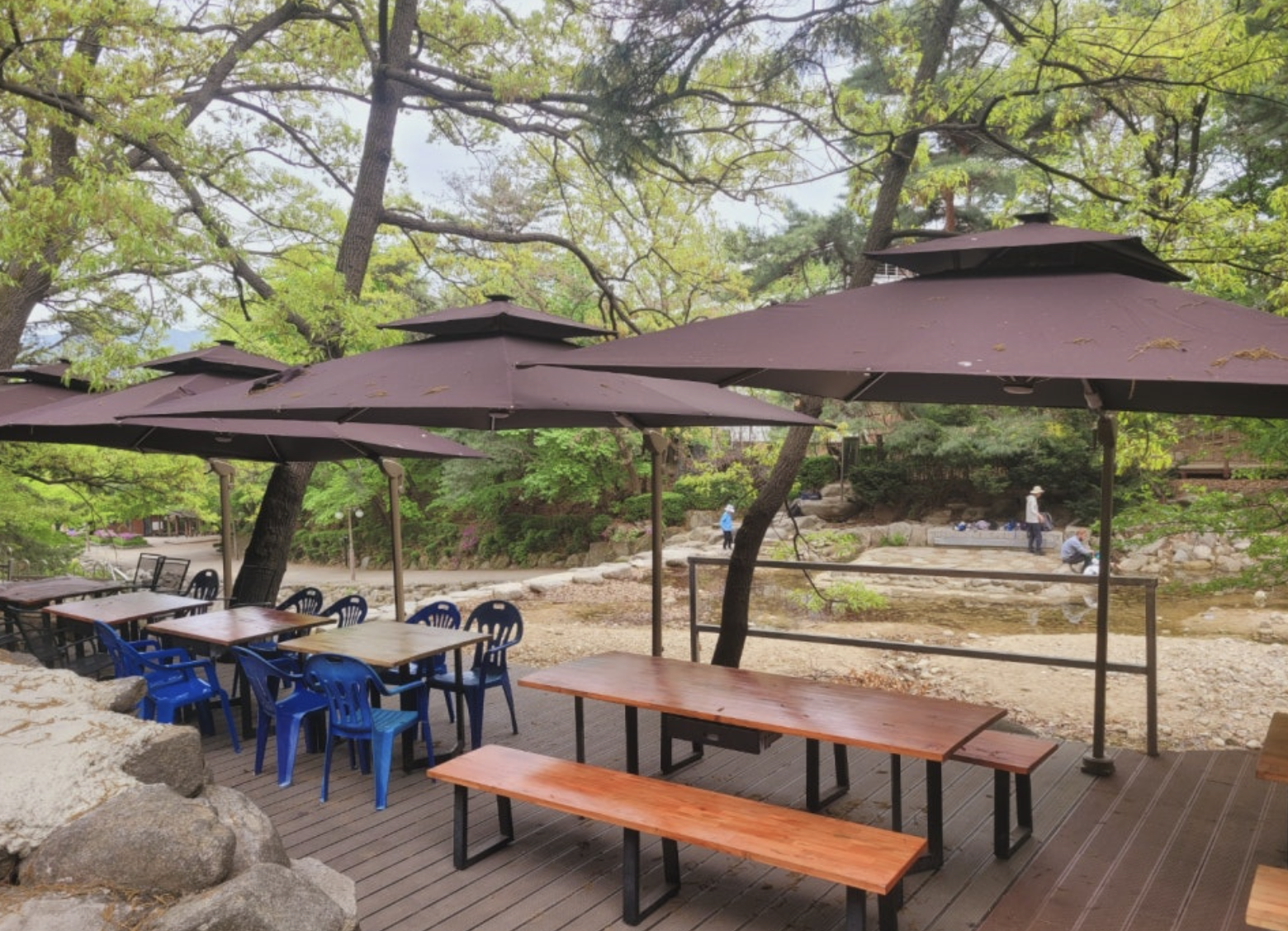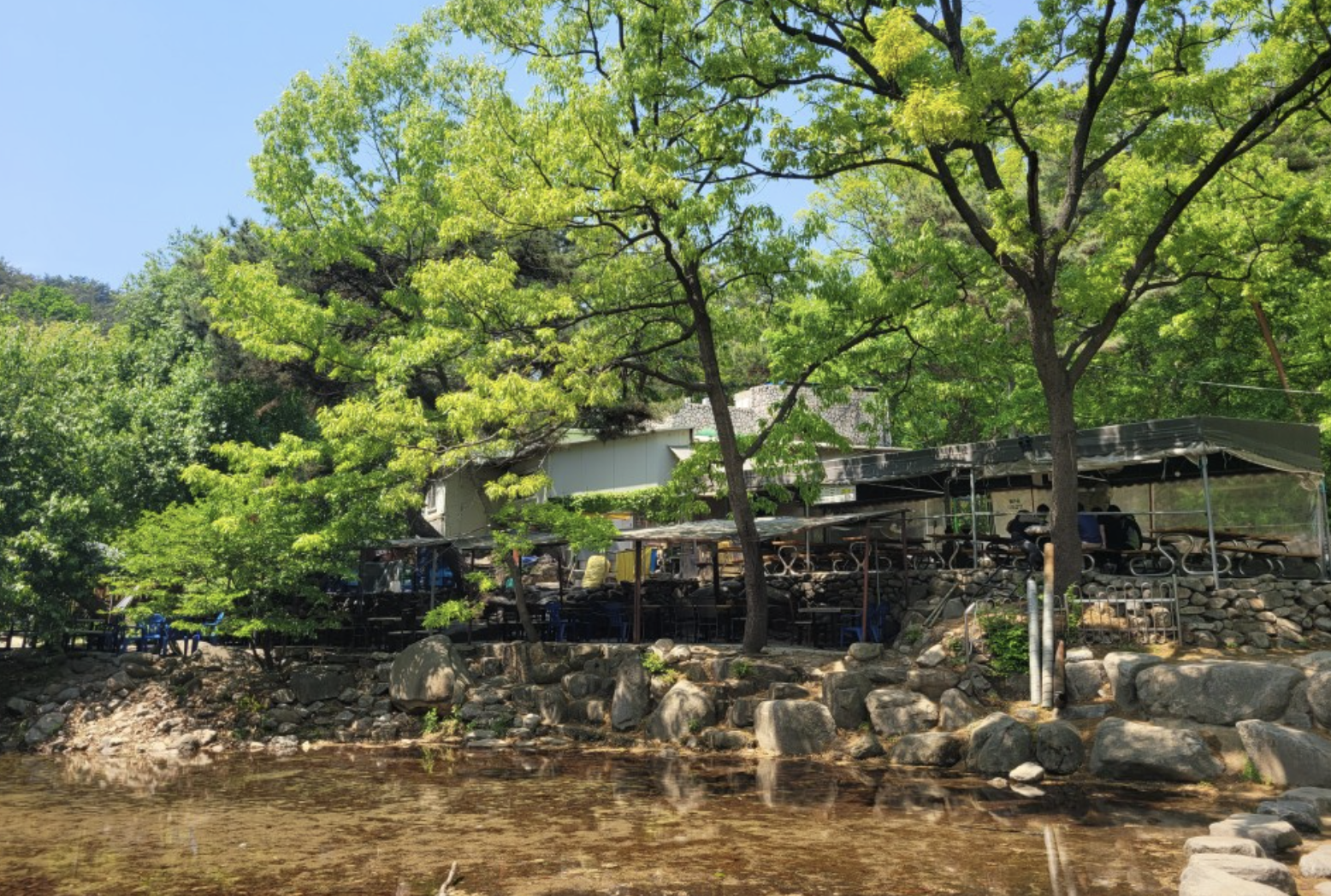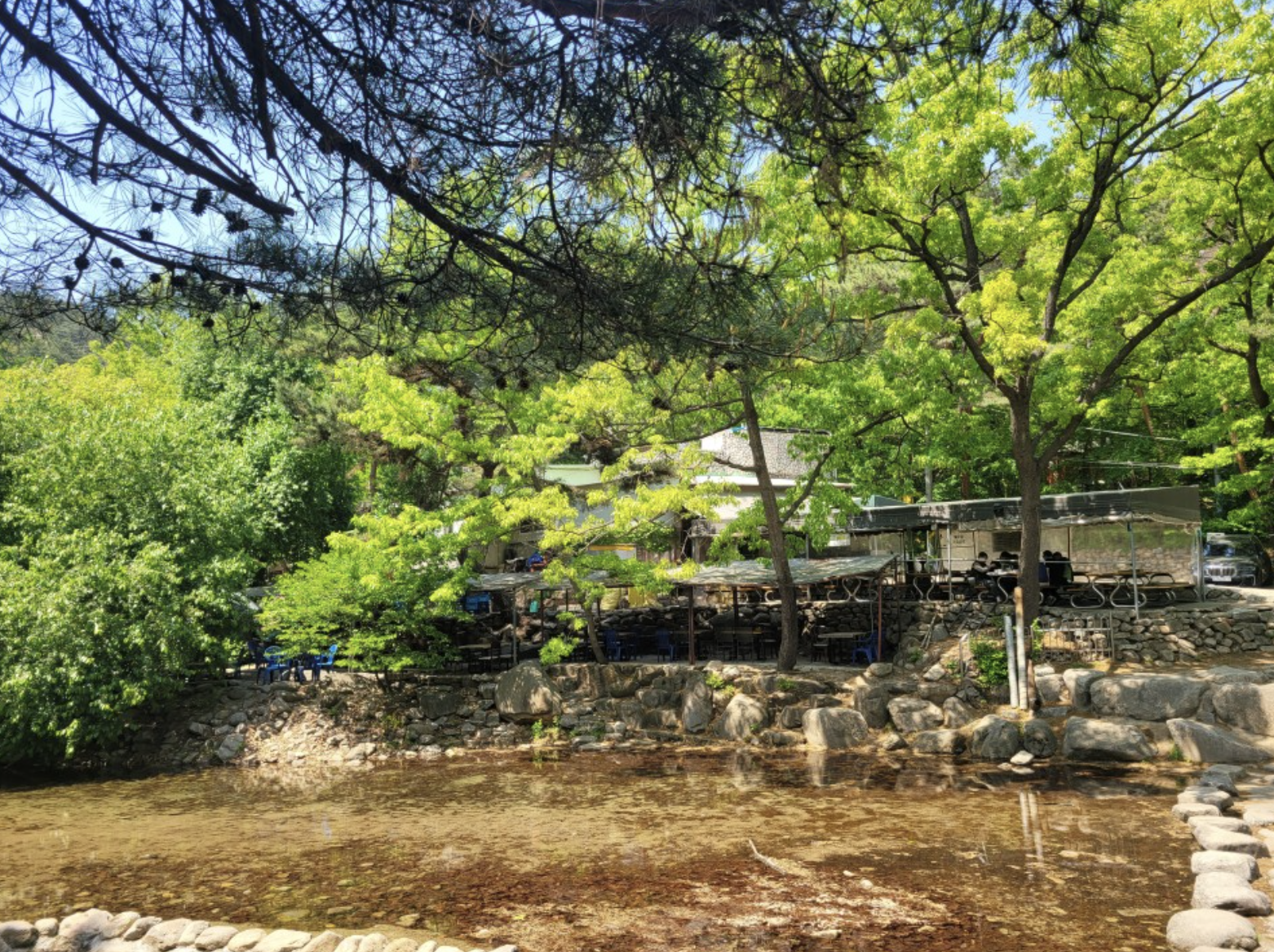 계곡 옆쪽으로 자리를 필 수 있는 공간이 많으니 식당을 이용하신 후