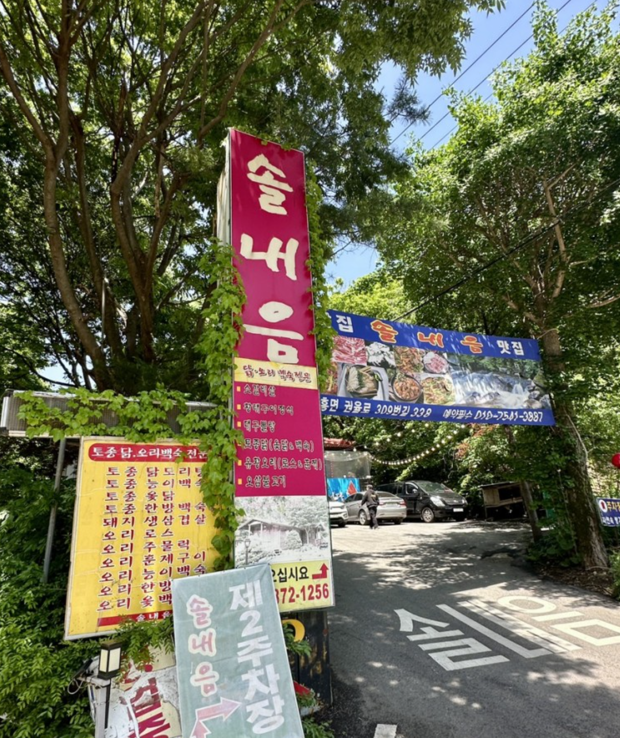 백숙,닭볶음탕 등 판매하며 주차장에 주차안내를 해주시는 분들이 계셔서