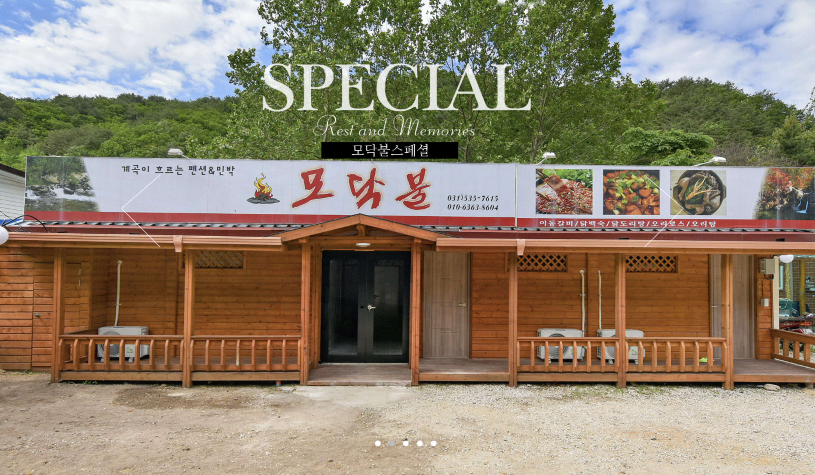 백운계곡 조금 위쪽에 위치한 모닥불 식당, 펜션 입니다.