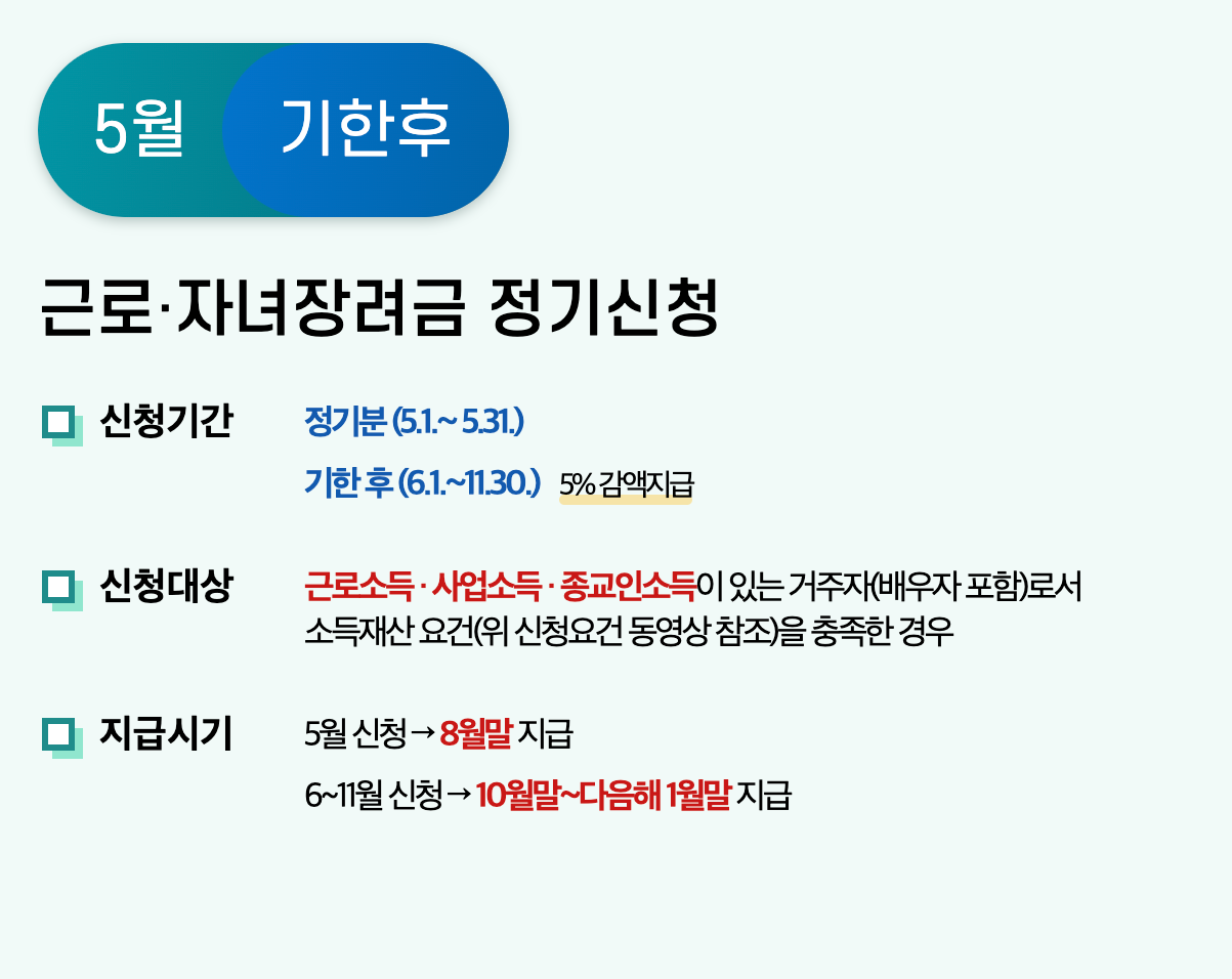 5월 근로장려금 및 자녀장려금을 신청할 필요가 없는점 참고해주세요!