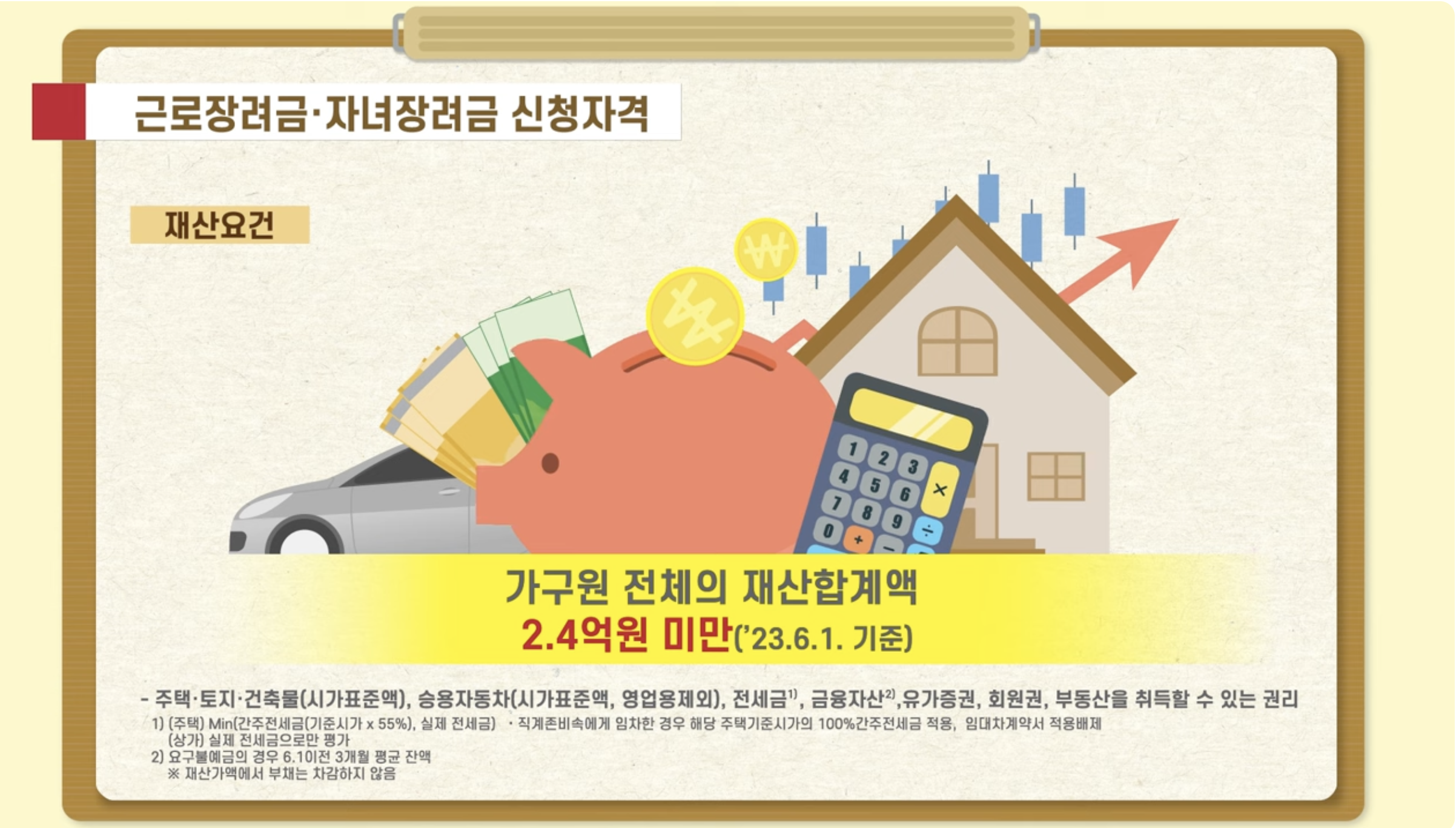 재산기준은 2023년 6월 1일 기준으로 2억4천만원을 넘지 않아야 합니다.