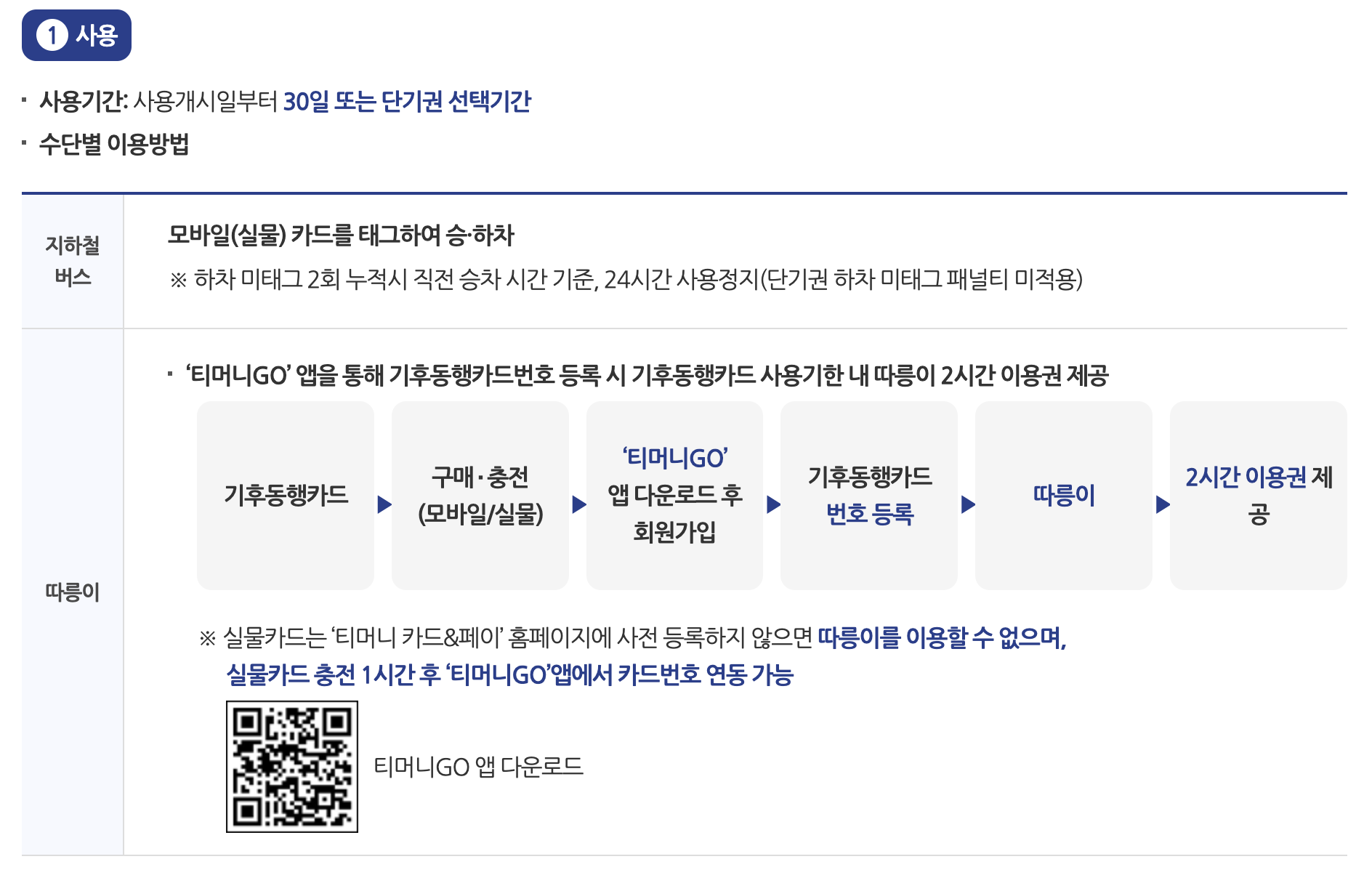 대중교통 이용의 편리함을 더한 티머니 정기권 카드는 아래 버튼을 누르시면