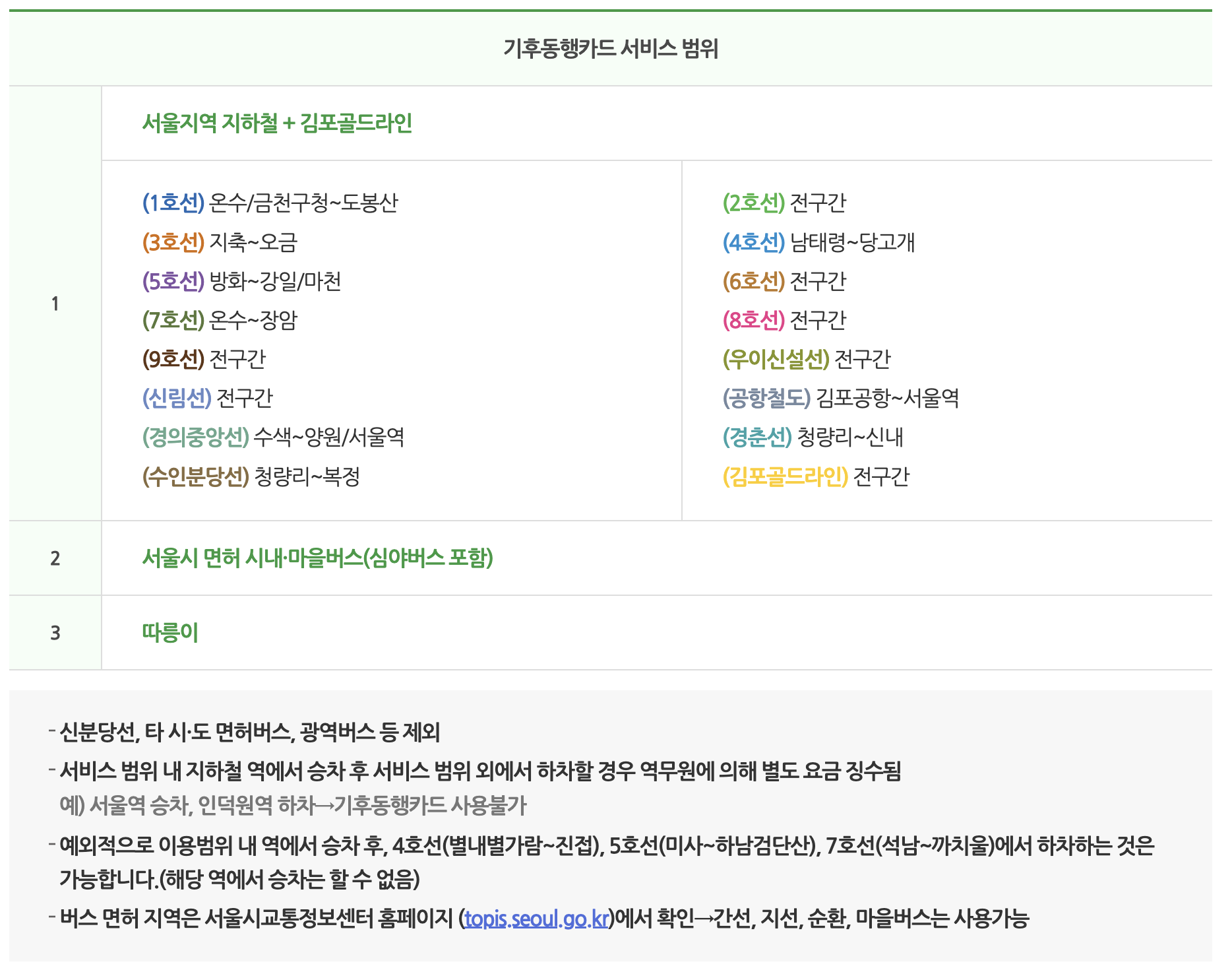지하철의 경우 기후동행카드는 서울 지하철 대부분의 노선과