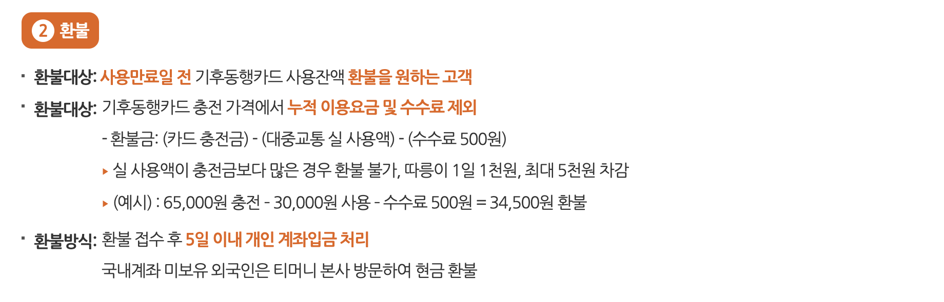 단, 국내계좌 미보유 외국인의 경우에는 티머니 본사 방문하여 현금 환불 됩니다.