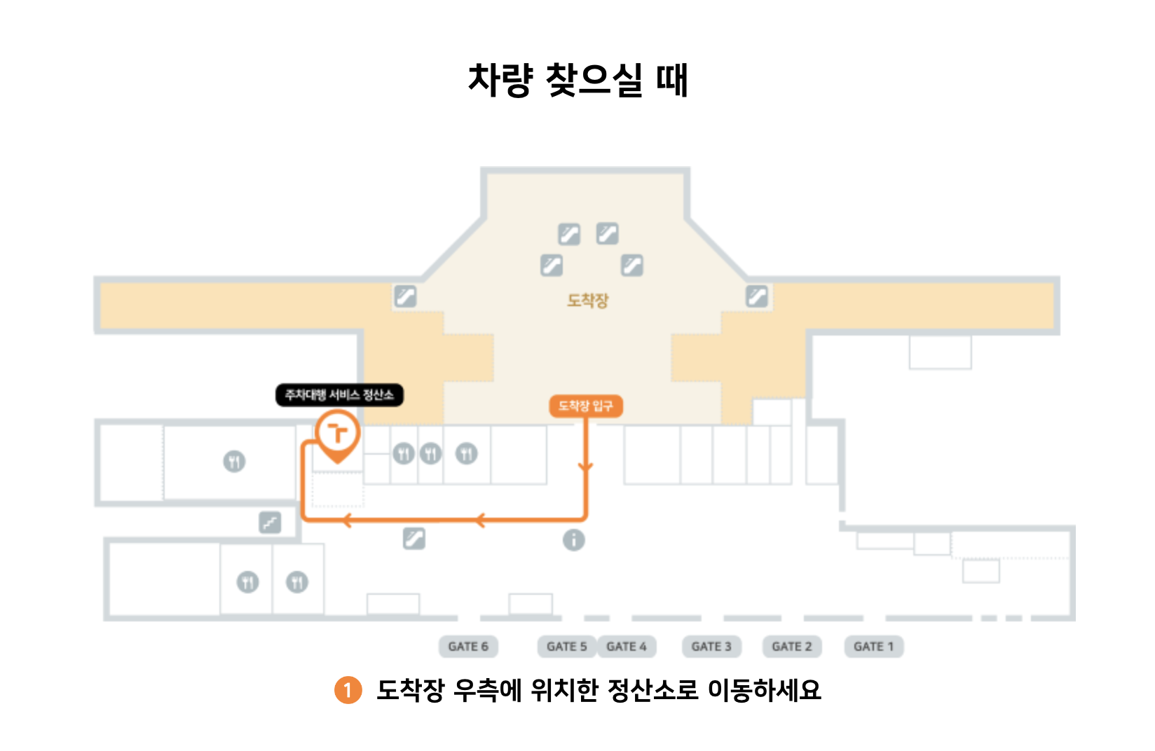 차량을 찾으실 때에는 도착장 우측에 위치한