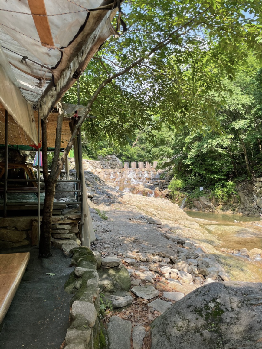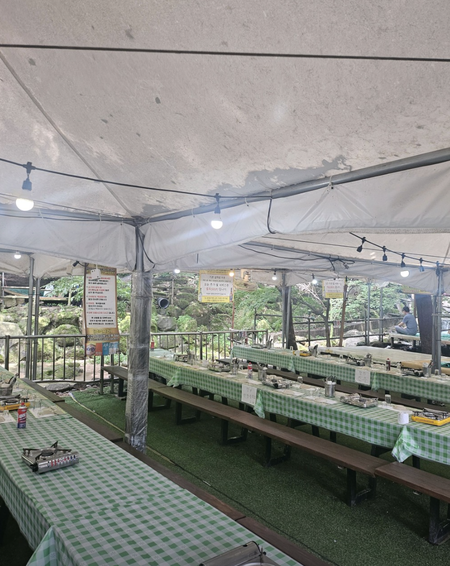 식당옆으로 계곡물이 흐르는 식당으로 계곡물소리 들으며