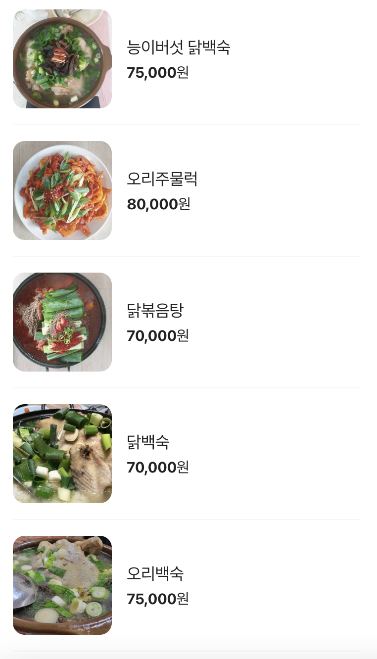 메뉴 가격대는 좀 비싼 편이지만 계곡백숙집들이 보통 가격대가