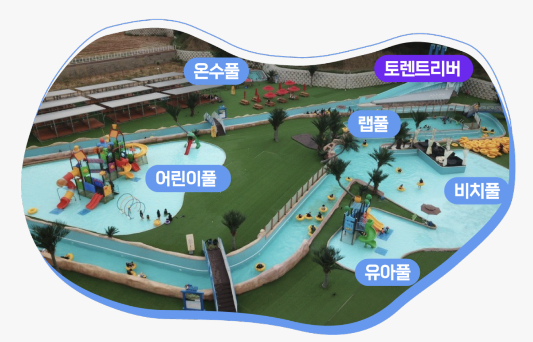 유수풀, 성인풀, 키즈풀 여러 개로 나뉘어 있어 아이들도 어른들도 놀기 좋습니다.