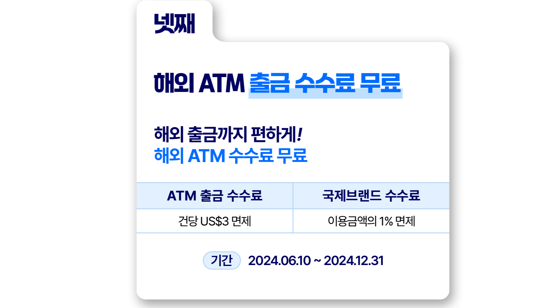 ATM 출금 수수료와 국제 브랜드 수수료 모두 면제 해주어