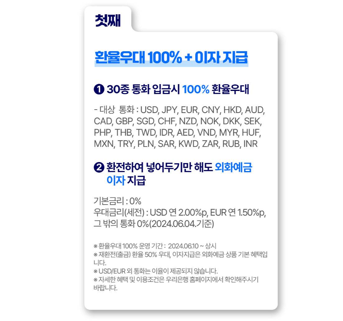 1. 환율우대 100%(무료환전) + 이자지급
