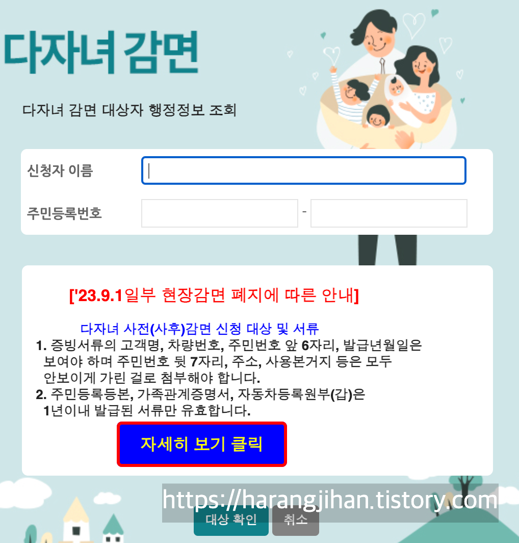 신청은 아래 사이트에서 다자녀감면 사전신청 하실 수 있습니다.