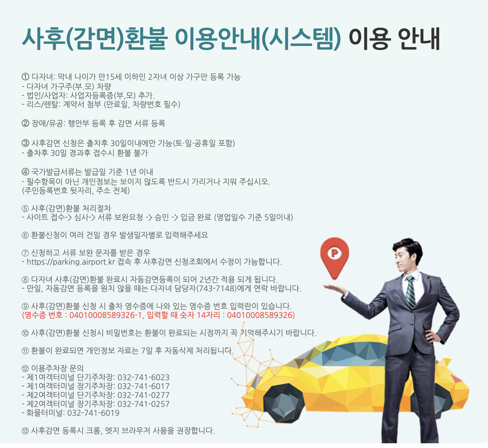 인천공항 주차장 다자녀 할인방법 다자녀등록 사후환불 신청