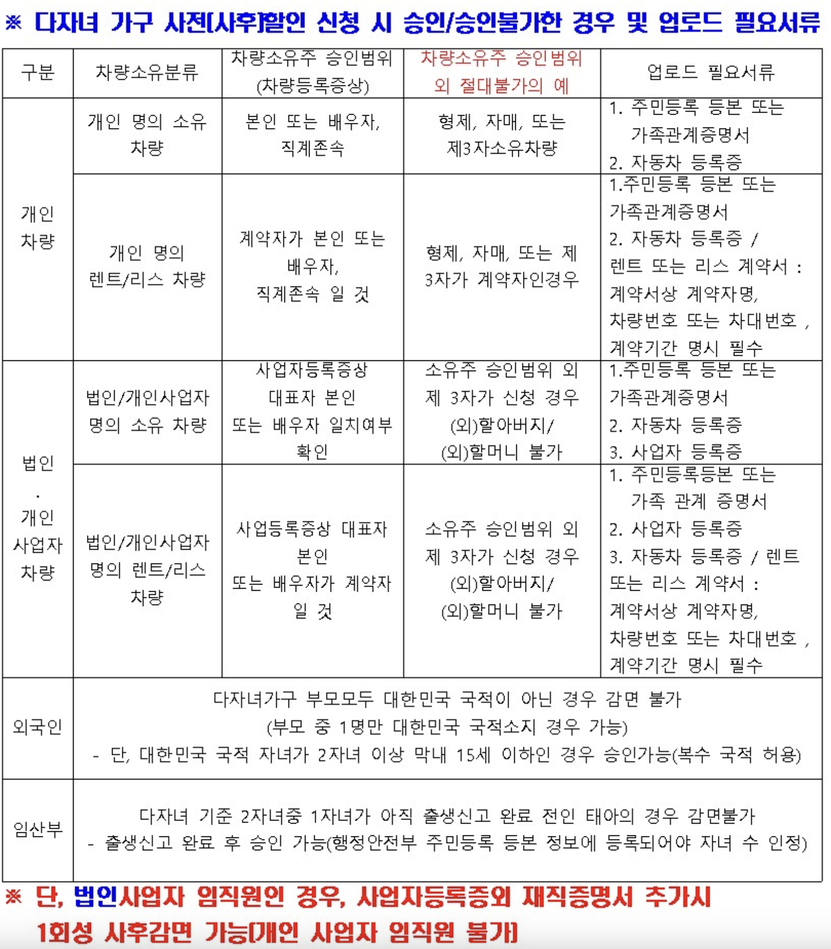 다자녀 할인 승인불가한 경우