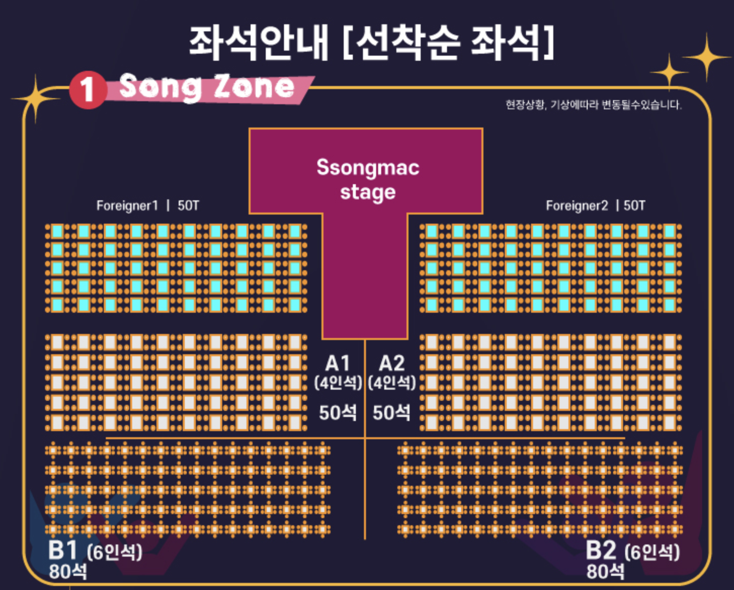 🔵 각종 공연이 이루어지는 메인무대 바로 앞 좌석을 VIP좌석으로 사전 판매합니다.