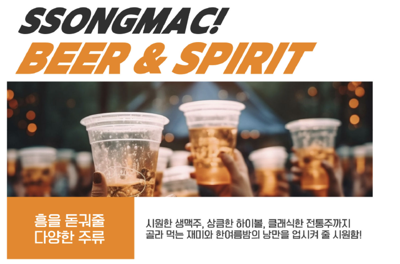 더운여름 시원한 생맥주 뿐 아니라 한국 전통주 및 다양한 먹거리/마실거리를