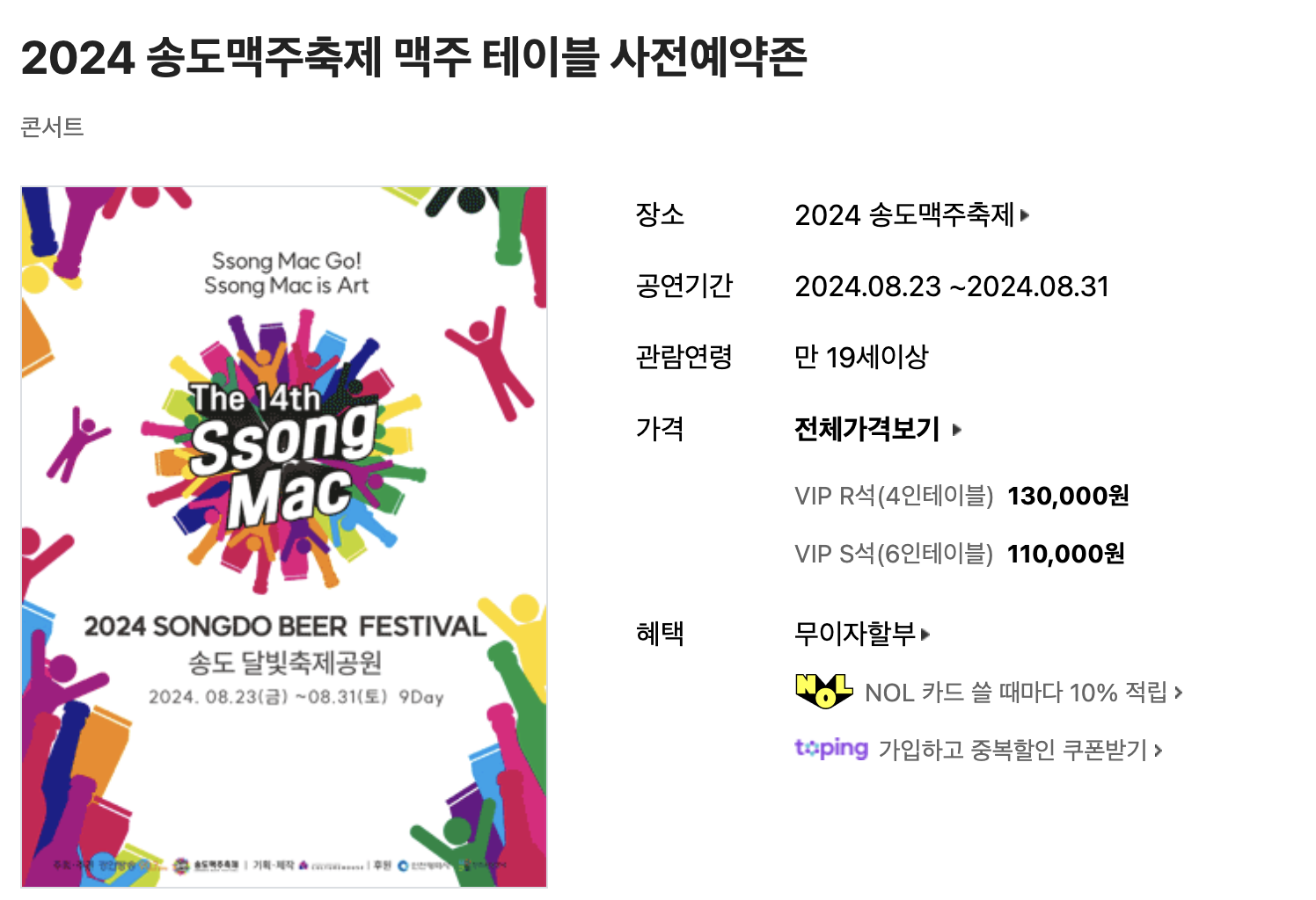 인천 송도 맥주축제 쏭맥 공연 일정 출연진 가격 알아보기!