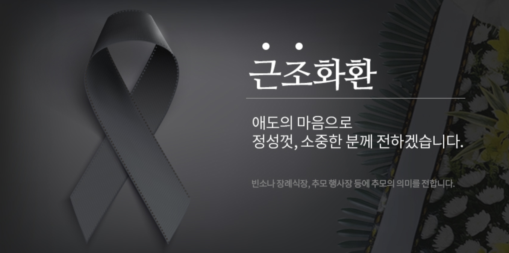 조의를 표현하는 장례 화환문구인 만큼 장난기가 없이 진지한