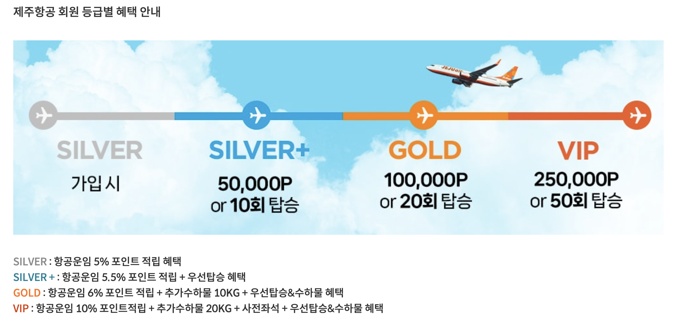 제주항공 회원 등급별 혜택안내