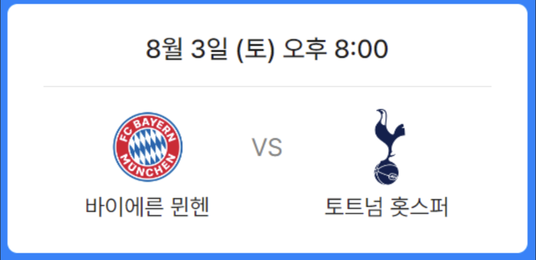 토트넘 VS 바이에른 뮌헨 경기시간이 오후 8시고