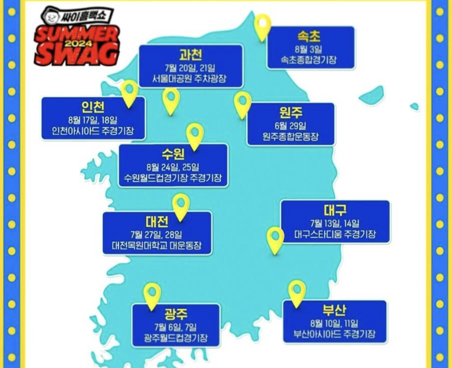 24년 8월 25~26일 수원월드컵 경기장까지 각 도시별 투어 일정이 진행됩니다.