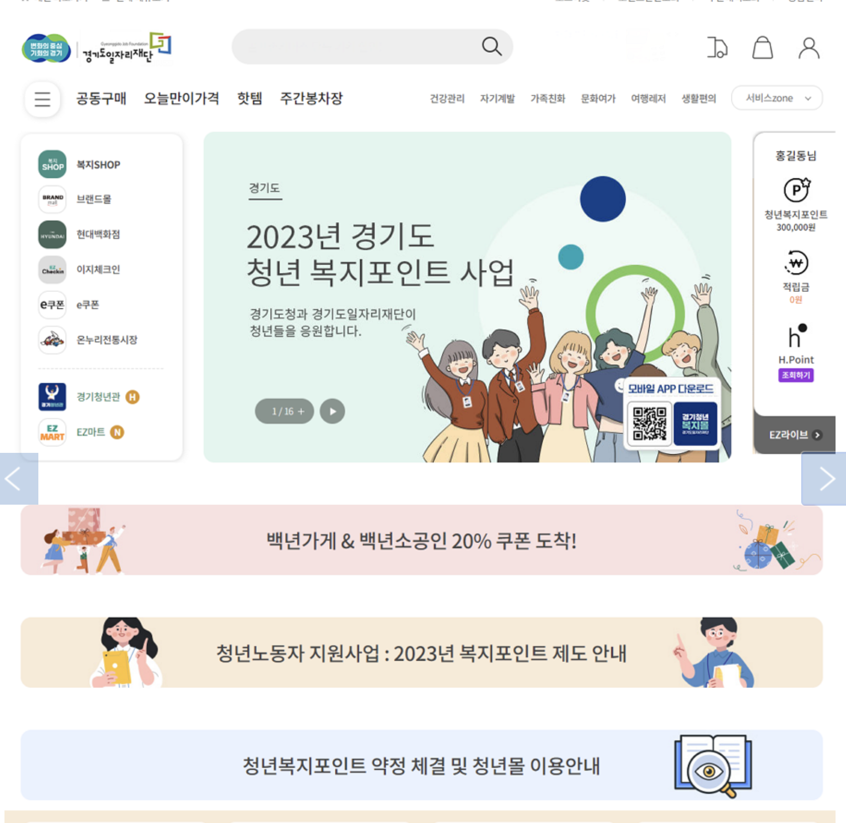 지급받은 포인트로는 경기도청년몰 사이트에서 다양한 상품 및 서비스를 이용 할 수 있습니다.