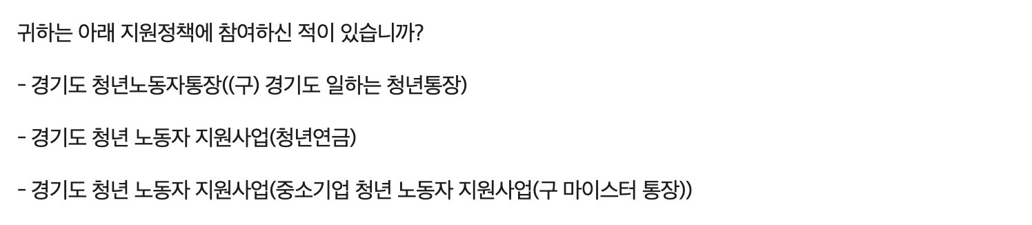 경기도 청년 노동자 마이스터 통장 사업 과 중복 참여가 불가합니다.