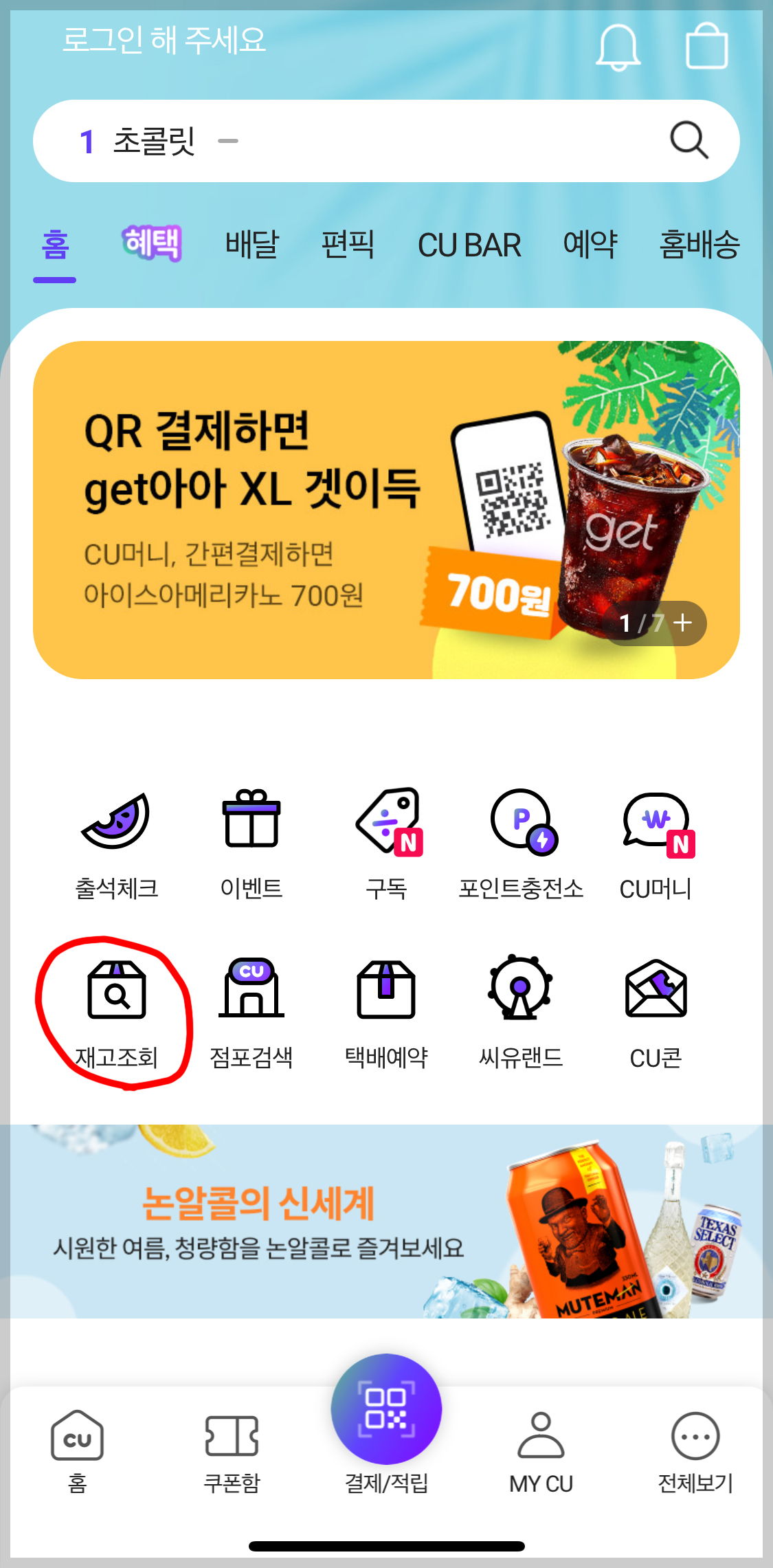재고확인 방법 : 포켓CU 어플에서 조회가능